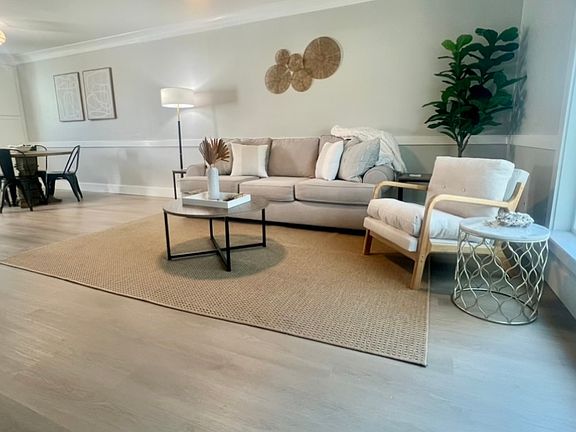 This home just completed a full renovation. It has new floors throughout, a custom kitchen including quartz counters, tile backsplash, a beverage center, breakfast bar, new light fixtures, crown molding, all new windows, new interior doors and paint throughout.