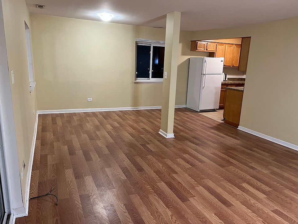 This spacious and beautiful condo has 2 bedrooms, 2 full bathrooms, living room, dining room, and kitchen. Updated kitchen with tile floor. Brand new laminate floors in the living & dining rooms, and newer floor in other rooms. Freshly painted. In-unit washer and drier, and central air and heating. Third floor unit, no elevator. Good view from the balcony. It also has a large storage room in the basement. Water is included in the rent. You pay the electricity bill. It is conveniently located, near shopping, train, express way, bus stop, and O'Hare airport. Two parking spaces. Security deposit & credit check required. Good credit is required. Renter pay electricity bill. Cat only