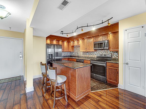 Welcome to unit 501 at 1777 Crystal Lane, nestled in a modern midrise within a gated community in the heart of Mount Prospect. This exquisite 3-bedroom, 2-bathroom end unit spans 1,500 square feet of living space. The spacious chef's kitchen is equipped with cherry wood cabinets, granite counters, stainless steel appliances and a large and inviting island. The open floor concept makes it perfect for entertaining. The bathrooms are generous in size and updated. The primary bedroom has its own en suite bathroom and includes a walk in closet. Enjoy seamless access with an elevator and unwind at the communal pool or tennis court. The unit features an intercom system, and electric heat for year-round comfort. Additional highlights include a garage, parking, common storage, on Site Manager/Engineer, Party Room, Security Door Locks, Clubhouse, Laundry, Elevator(s), Inground Pool, Intercom, School Bus. Pet-friendly, with a dedicated laundry facility, this home offers both luxury and practicality.
