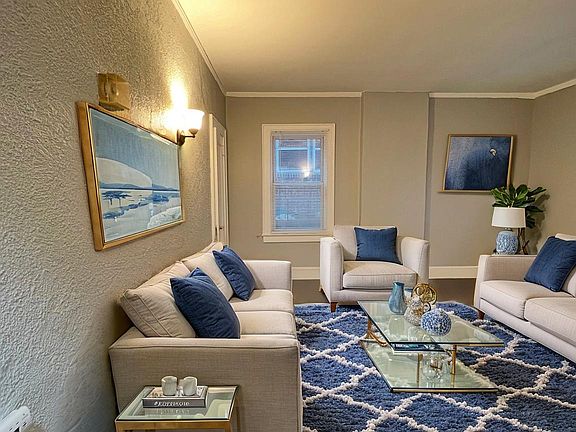 Here we have a 2 bedroom aaprtment located on the second floor of a private house. Renovated kitchen with white cabinets and stainless steel appliances gives the home a very clean sophisticated feel. This apartment also has a large living room that can be easily converted into a primary bedroom. The other two bedrooms fit queen size bed. Beautiful Gray carpet all around. Heat and hotwater included. Street parking. No laundry on premises. this unit will not last.
