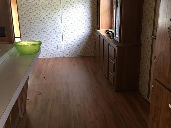 Small but nicely appointed Single wide mobile home, center island with sink and breakfast bar, room for dining table, has nice cabinetry with built in buffet and pantry in kitchen, W/D hookups behind sliding doors in kitchen. Split bedroom/bath floor plan (MBed and MBath at one end, second bed & bath at other end). Master Bedroom has His and Hers closets. Newer floor covering thru out. This is a woodsy warm interior. Located in Nice quiet and safe Mobile Home Park in better central part of town, walk to all three schools, YMCA and shopping. Stove and fridge included. Background/credit check required on Al tenants 28 yrs and older.