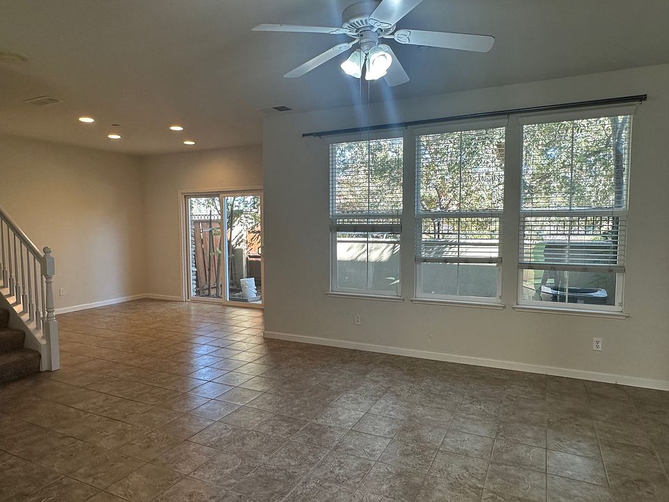 Modern 2-story, 3-bed, 2.5-bath 1,460 sqft townhome for rent in Mountain House, a Master Planned Community. The home is located next to the Trails with NO neighbors behind.