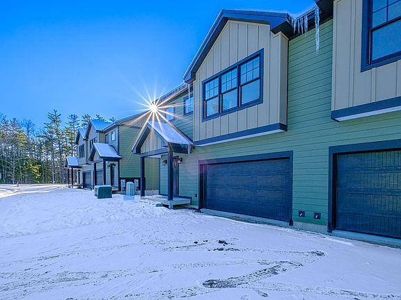 Welcome to Bridgton's newest condominium offering, ideally located just one minute from Pleasant Mountain and thoughtfully designed to appeal to both skiers and those seeking refined, low-maintenance living. Each townhouse spans approximately 1,600 square feet and offers year-round comfort with energy-efficient heat pumps, forced hot water heat, and a propane fireplace—ensuring cozy winters and cool, comfortable summers. These well-appointed condos feature three bedrooms, two and a half baths, a dedicated laundry room, a full unfinished daylight basement, and an attached two-car garage. The open-concept kitchen and living area is filled with natural light and designed for effortless entertaining, showcasing granite countertops, stainless steel appliances, Andersen windows, and a welcoming center island. A private deck extends off the kitchen, while the living room's gas fireplace creates a warm and inviting retreat after a day on the slopes or a quiet evening at home. All bathrooms are finished with granite countertops, and both full baths include double vanities for added comfort and convenience. Whether you're seeking a mountain getaway or a stylish, easy-living residence, this is a place you'll feel right at home.