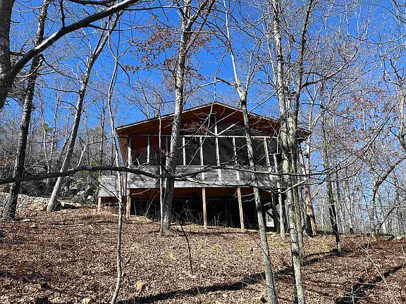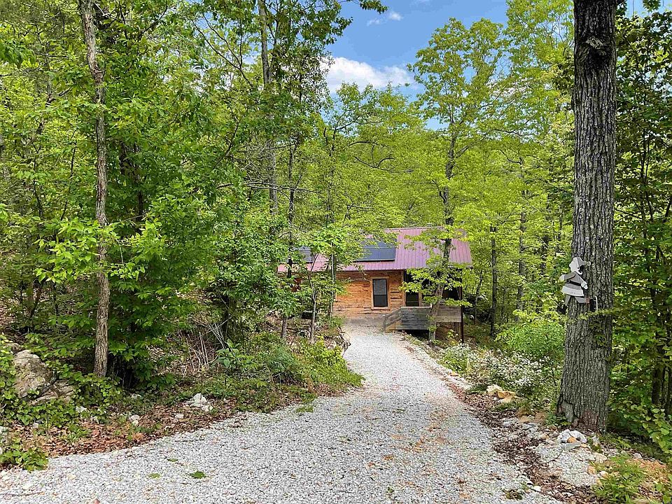 This cedar log cabin is a must see to appreciate how unique this property truly is. It's off grid but don't let that scare you. The cabin is powered by 14 solar panels, large capacity battery and an automatic 20kw generator so you never lose power. You have all the amenities of a cabin on the grid minus the utility bills. It currently has a water catchment system, but rural water is available. Seller is so impressed with this system that he plans to use it on his next project. The strategic location of the cabin lends itself to peace and quiet. Main structure is 40'X36' which includes a 12'x36' screened porch with woodburning fireplace. It features 1BR/2BA with an open concept living/kitchen/dining room anchored by a thermostatically controlled propane fireplace with blower. The hearths on both fireplaces are soapstone. The kitchen countertop is butcher block, and the bathrooms have granite and marble. The cabin is heated/cooled by a highly efficient mini-split system with 3 heads. The 18+/- acres are all wooded with beautiful rock outcroppings, pedestal rocks and creek. Many species of wildlife call this area home including deer, bear, turkey and small game. Call today!