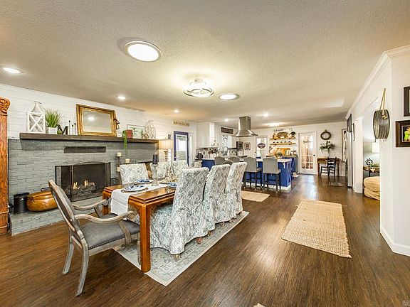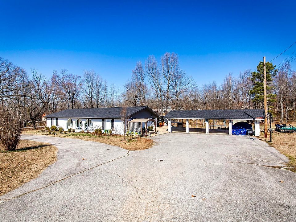$10,000 PRICE REDUCTION This beautiful spacious home sits on 1.76 acres at the corner of Poff and Massey Street in the city limits of Mountain View. The small stream and stately oak trees give this “in town” property a warm country feel. The house has an open living/dining area that creates many options for the new homeowners. Five bedrooms and four full baths make this a perfect home for a large family or someone who enjoys entertaining guests. A laundry room, butler pantry, and nice sized basement round out this stylishly updated home. Extensive renovations have transformed this house into a wonderfully inviting setting. A screened in back porch and an impressive deck offer two tremendous areas for kicking back and enjoying a cup of coffee. An outside grilling and dining area, along with an above ground swimming pool, also enhances this outdoor entertainment setting. A four-bay detached carport provides extra parking as well. Other notable features include a new roof, remote natural gas fireplace, termite contract, and nearness to all the amenities the charming town of Mountain View provides. An additional 1.36 acres bordering to the east is also available for 40k.