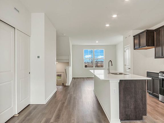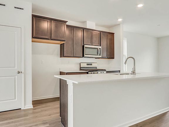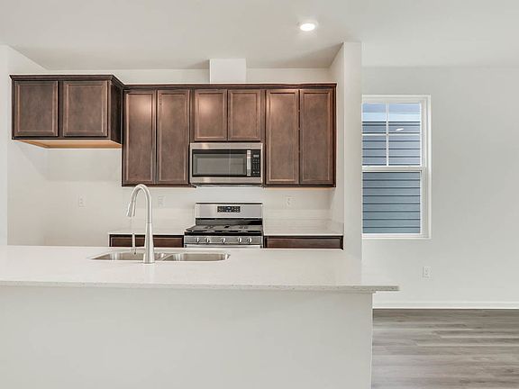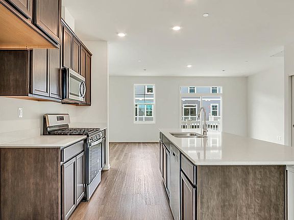 Find your way to 2170 Glacier Street in Mundelein, Illinois, a modern new townhome for sale in our Townes at Oak Creek community. This new construction townhome is ready for you now. Homesite includes a fully sodded yard with landscaping as well as snow removal in the wintertime. This End Unit, Garfield townhome plan offers 1,752 square feet of living space with 3 bedrooms, 2.5 baths, and a finished flex room. As you step inside the home you enter a split-level foyer, downstairs is a fully finished flex room, perfect for a home office or playroom. Walking up the stairs to the main level you will find this home's open concept living with 9-foot ceilings and luxury vinyl plank flooring throughout the kitchen, dining, and bathrooms. The expansive kitchen features a large island that is ideal for everyday living and overlooks both the front dining and back great room areas, making it the perfect space to entertain. Additionally, your kitchen includes Quartz countertops, 42" designer cabinetry with soft close doors and crown molding, stainless steel appliances and a pantry. Arriving at the top floor, you'll find the primary suite, secondary bedrooms with a full second bath, linen closet, and laundry room. The spacious primary bedroom suite includes a large walk-in closet and connecting en-suite bathroom. This Chicago home includes our America's Smart Home Technology. Photos are of a similar home. Actual home built may vary.