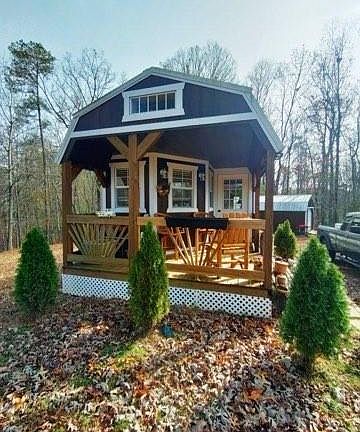 Neat and sweet tiny home. Storage building converted to a tiny home. Conveniently located off a state maintained paved road. Extra outside storage building and a large garage/storage building. Gated entrance, level lot with some sloping in back. Unrestricted property, with private well. The property has been fenced and has an easy access entry. Includes a new washer/dryer combo, stove, refrigerator and microwave. Electric established. Great property, good location and ready to go. Unique and appealing getaway spot or possible individual home for some lucky owner. Call today for viewing of this sweet heart of a deal property!
