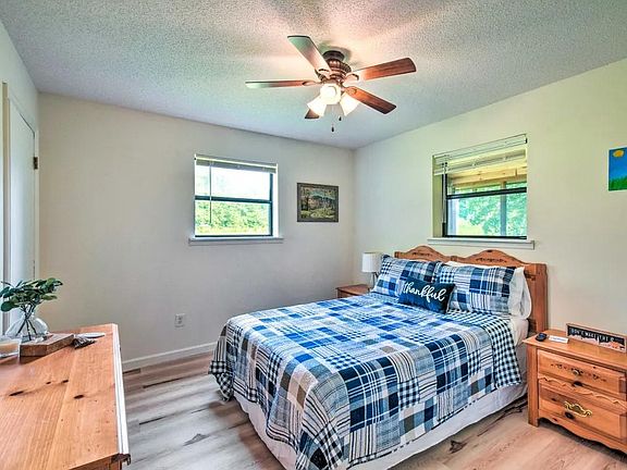 Quiet, serene setting, not far from town. Sit on the back porch and listen to the creek, in the winters enjoy beautiful views of the mountains, and in the summer enjoy the shade from large trees. See the fall colors in your own backyard. This furnished, 3 bedroom, 2 bathroom home is on a quiet private street, fully paved, has plenty of space for you to enjoy.