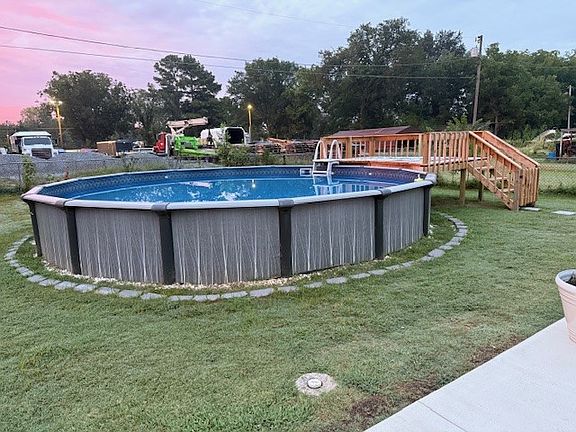 Sitting on 0.71 acres, inside city limits but country vibes Freshly 3 bedroom home (all walking closets) , 2 bathroom, up-dated kitchen and living room, wood burning fireplace, den area that can be an extra room or a office space with a barn sliding door, home is central heat and air, comes with all appliances and washer/dryer hookup semi inground pool (2years old), brand new deck, and concrete patio..