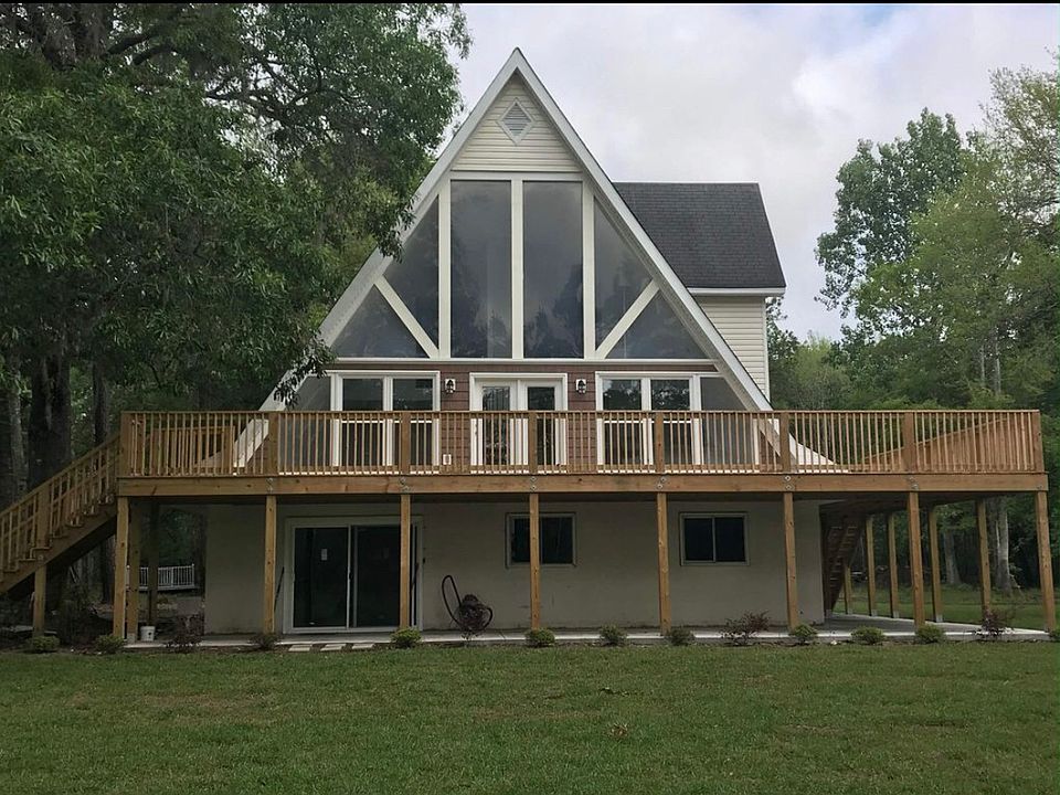 This home sits on 1.15 Acres. Swim spa will be additional fee. Waterfront with pier and huge fenced yard. Boat launch on same street. Tons of storage with attached garage and separate garage with half bath. This home can be a family retreat that is close to everything at the beach. Owner will consider leasing to experience Airbnb host. Home can also be purchased. Full bath on every level and tons of hosting space with wrap around deck. Home is close to beach, restaurants, and shopping. NO HOA and on dead end street. Home will be shown by appointment only to qualified tenants.