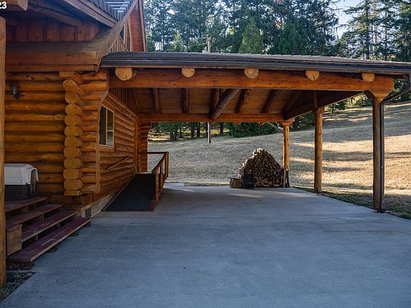 Dreaming of a log home in rural Oregon? Looking for privacy and seclusion? This log home was built in 2000 and features vaulted ceilings, an open floor plan and lots of natural light. There is a covered front porch and large carport that could double as a covered patio plus large deck off the loft upstairs. There is a wood stove in the great room and the laundry room is large enough for a freezer and lots of pantry space. The downstairs bathroom has a shower and clawfoot bathtub. The shop is over 1,200 sqft with lean-to off the back and extra storage in a second level. The property is a combination of trees and pasture with a gentle slope. Homesite is very private with beautiful views of the valley.