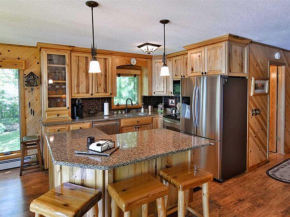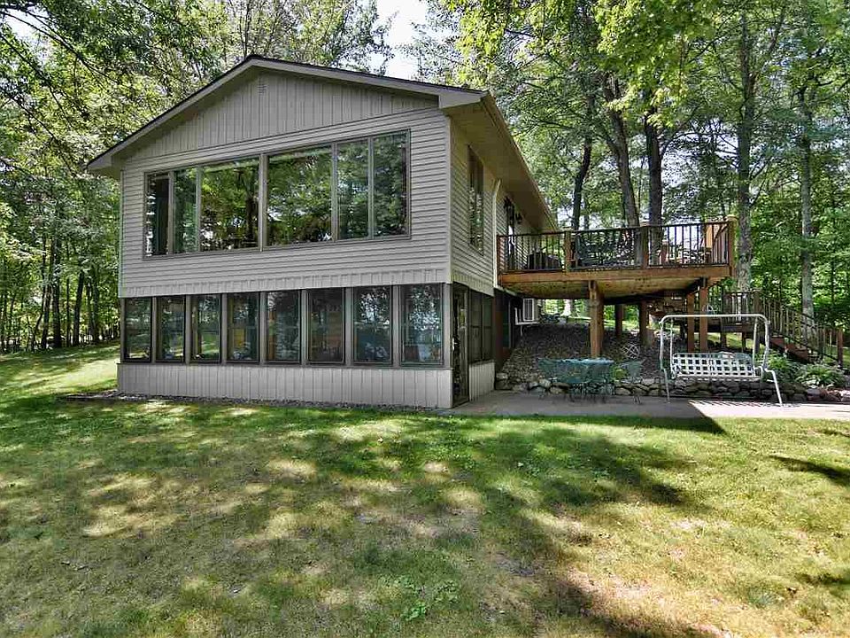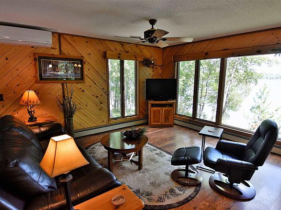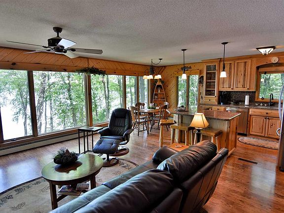 WELL PLANNED EXTERIOR TO THE INTERIOR THAT MAKES THE BEST USE OF SPACE, THIS IS ONE PERFECT PLACE ON THE LAKE. OPEN LIVING/KITCHEN/DINING AREA WITH HICKORY CABINETS & WALL OF WINDOWS FOR A GREAT VIEW OF THE LAKE FRAMED BY THE PINES. 2 BEDROOMS & FULL BATH. LOWER LEVEL HAS REC AREA & BAR AREA FOR ENTERTAINING. ANOTHER FULL BATH. ADD A 4 SEASON PORCH ACCENTED WITH LOG SIDING. TWO GARAGES FOR 6 STALLS. FIREPIT FOR QUIET NIGHTS. LARGE DECK & PATIO. LANDSCAPED. THIS IS YOUR SPECIAL PLACE.