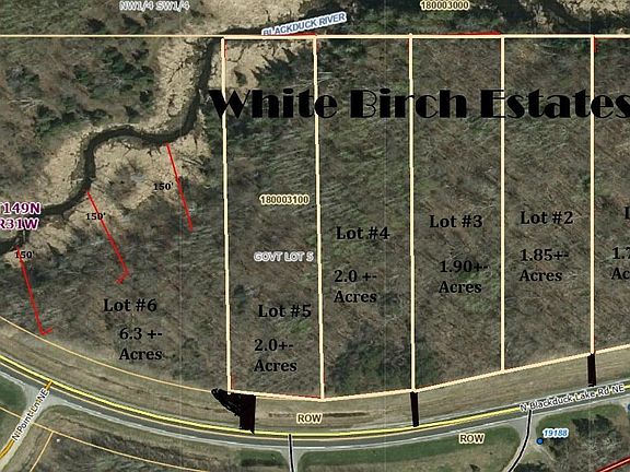 6 level buildable lots that have the beautiful Blackduck river on the edge of the property. Come pick your favorite one or multiple lots to establish your up north living!