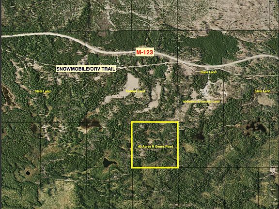 Spectacular 40 Acres of recreational property that has been untouched for decades. Beautiful rolling hills with mature oak trees. Build your off-grid camp or cabin with a view and still be minutes from town. This land features a mature mixture of trees and marsh areas that brings in the wildlife. All split rights granted. Seasonal Access by vehicle, snowmobile access in the winter. Genes Rd is two track, woods road that is well established and has been in place for decades. Seller is a Michigan Licensed Real Estate Broker.