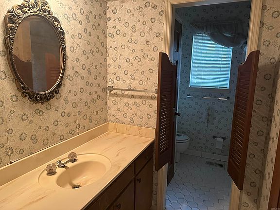 Long time owner of this one level house did do required repairs like replaced roof new hot water tank 2024 new heat /ac but rest of the house is original condition and needs to be updated.Split bedroom plan formal dining room plus large eat in kitchen nice size kitchen with lots of cabinets nice size bedrooms nice size den with wood burning fireplace.All brick house with private backyard backs up to wooded area big deck on back .SELLER is not wanting to do many repairs as why it priced like it is .