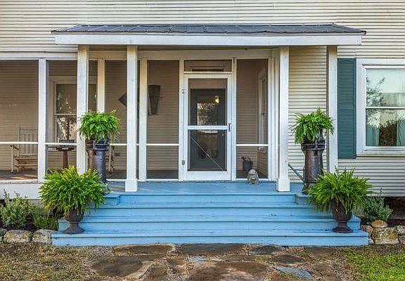 Built in the early 1900s, moved in 1982, and beautifully restored in 2009, this farmhouse was featured in Paper City Magazine by designers seeking a Round Top–area retreat. The 4/2 home blends historic charm with modern comfort, showcasing original hardwood floors, shiplap walls, and expansive screened porches overlooking Washington County’s rolling hills. A 956 sqft. insulated, air-conditioned workshop (added in 2019) is perfect for hobbies, vehicles, or storage. Contents negotiable; some exclusions apply. Home is set on 5 peaceful acres along quiet Valley View Lane—close to town yet private with no through traffic. The full 30-acre tract offers road frontage on Meyersville and Valley View, scattered trees, a large pond, partially ag exempt for cattle, multiple build sites, and stunning views—truly a must-see!