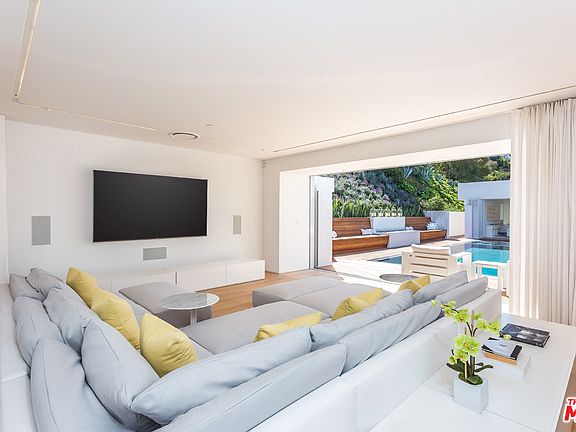 Located on the most sought-after street in Los Angeles, "Billionaire's Row," this spectacularly crafted contemporary estate offers city and ocean views and exudes quality and refinement. A stunning zero-edge pool, substantial Ipe outdoor decking, bespoke Poliform fixtures and finishes, subtle indoor LED lighting, and lush and tranquil landscaping complete this impressive single story estate. With an open floor plan and floor-to-ceiling glass doors, the home boasts exceptional indoor-outdoor living. Secure and private, this is a unique opportunity for the most discerning owner.