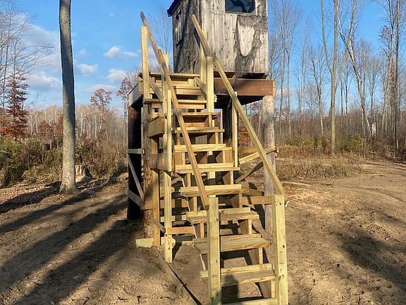 Beautiful acreage with great hunting, mature pines, fruit trees, berry bushes, food plots and deer blinds. Truly a beautiful couple of parcels. Parcel #1 is 6.43 acres and parcel #2 is 21.63 acres both parcel have road frontage. This property is in a great recreational area. It is approximately 1 mile from public access and the DNR boat launch for great fishing on all sport 8-point lake. It is also just a short drive to Crooked Lake, Perch Lake and Grey Lake. The Pere Marquette rail to trail system is also just a short snowmobile ride away.