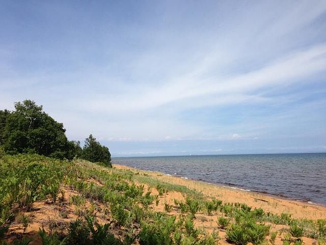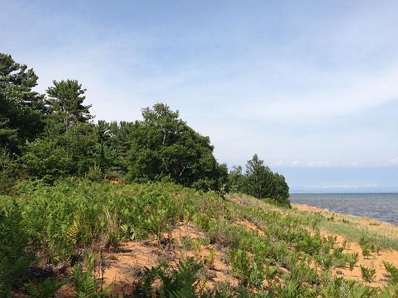 Prime rolling dune beach frontage (100 feet) with sweeping panoramic views of Whitefish Bay. Heavily wooded with mixed oak/pine forest; private. Year-round access off Whitefish Point Rd via private easement. Fiber optic service has been installed throughout the Paradise area.