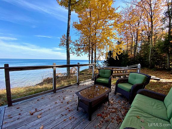 This sprawling ranch style home has it all - 10 wooded acres, 297' feet of Lake Superior frontage and positioned perfectly in the heart of the Upper Peninsula. Welcome to Laughing White Fish Point - here you'll find a 1000-acre residential community situated on the majestic shores of Lake Superior. Approximately 30 miles from the city of Marquette and 16 miles to Munising you'll be able to appreciate both cites and all they have to offer. The home features 2 beds/2 baths and easy one level living. The floor plan is perfect for family, friends and gatherings. The large kitchen is well equipped with ample counter/cabinet space, a huge pantry and direct access to the main floor laundry. The breakfast bar overlooks the dining area and opens to living room - definitely the focal point of the home. Here you'll find a massive stone fireplace, knotty pine interior, cathedral ceilings and incredible window placement as the view of Lake Superior from this room is truly breathtaking. The attached 2 car garage measures 24x32. Check out the bonus detached garage with a sauna and finished living space on the second floor - perfect for extra storage and overflow company. Take in Lake Superior from the enclosed sun porch, the patio area with fire pit or walk down the staircase to access the lake. Enjoy all 4 seasons - spring and summer time fun, gorgeous fall colors and snowmobiling in the winter! This home and property will not disappoint.