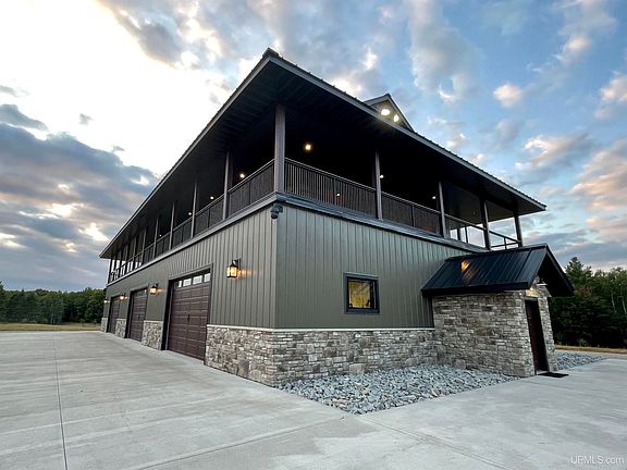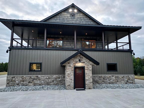 Unparalleled Value! This remarkable property truly has it all! Nestled in 240 pristine acres within Holmes Township, Menominee County, you'll discover your own private lake as a captivating centerpiece. As you explore the meticulously designed acreage with miles of scenic trails, you'll soon be fascinated by the exceptional structures, all brand new as of 2020! The "Lodge," with an impressive 50x100 footprint, offers a lower level equipped with an inviting bunk room, accommodating 8 guests. Additionally, you'll find a well-appointed bathroom, laundry facilities, a workout room, sauna, and a utility room spanning the north side at 15x100, while the remaining space boasts a finished and heated floor garage. Upstairs, indulge in over 3000 square feet of exquisitely finished living space, featuring awe-inspiring views from within and a 300-foot balcony/deck surrounding the entire upper level. The kitchen is a masterpiece, showcasing top-of-the-line custom features, quartz countertops, and soaring cathedral ceilings. The amenities are endless, with heated floors downstairs, plus two separate forced air furnaces with A/C, ensuring comfort for both levels. Further enhancing the property is a generous 50x90 pole building for additional equipment storage. But wait, there's more! A 56x45 pole building, tastefully finished with rustic barn wood, provides the ideal setting for entertaining. Allow ample time to explore every facet of this property; the value is simply unmatched. For peace of mind, there's a backup generator and a comprehensive security system in place. Food plots, feeders, and blinds are ready for use. Imagine having the ultimate lodge for self-sufficient living—it's all here. The seller has set an attractive price on this extraordinary property to facilitate a swift sale. Replicating this endeavor from scratch would come at a substantially higher cost, yet this property stands as good as new and ready for your enjoyment. Don't miss out on this opportunity!