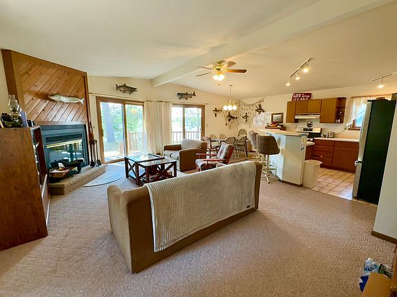 Turnkey gem on Lake Alice! 100' of sand/rock frontage with riprap shoreline, amazing views, and BRAND NEW stone slab stairs leading down to the water, this is the perfect retreat for those who love all that Lake Alice has to offer. Pier, boat lift, firepit are all included and have you set to enjoy the Northwoods on closing day. Just over an acre, the raised lot has ample lakeside space for enjoyment and includes a detached two car garage along the gravel driveway. The 1,092 finished square foot home comes completely turnkey with all furniture, furnishings, and decor (save for some fish, poles, and tackle!). Two lakeside sliding glass doors provide INSANE water views and the wood burning fireplace will keep you warm on the cool Northwoods nights. Two bedroom, one bathroom open concept floor plan with main level laundry can't be beat. Need to expand? The full, unfinished basement can double your square footage! Enjoy what Tomahawk and Lake Alice have to offer with this opportunity!