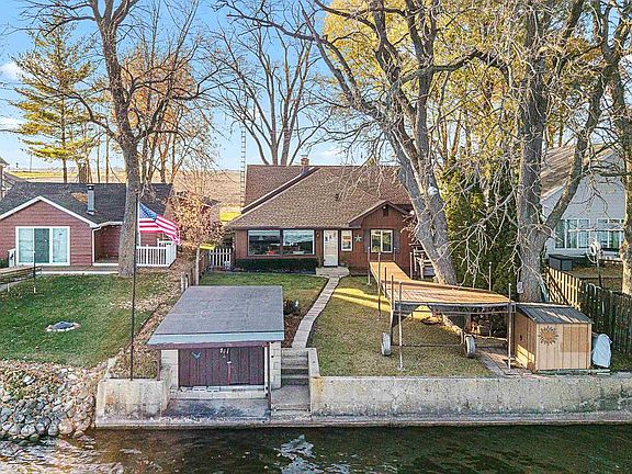 Enjoy lakeside living in this rare 4-bedroom year-round home on Fox Lake with 50? of prime hard-bottom frontage. Panoramic views, abundant storage throughout, spacious living areas, and a classic brick fireplace that anchors the room. New roof installed Sept 2025. Boathouse and pier included for easy lake access. Large primary bedroom, great natural light, fenced yard, and plenty of room for guests. An ideal full-time home or getaway, just 60 mins to Madison, 90 mins to Milwaukee, and under 3 hours to Chicago.