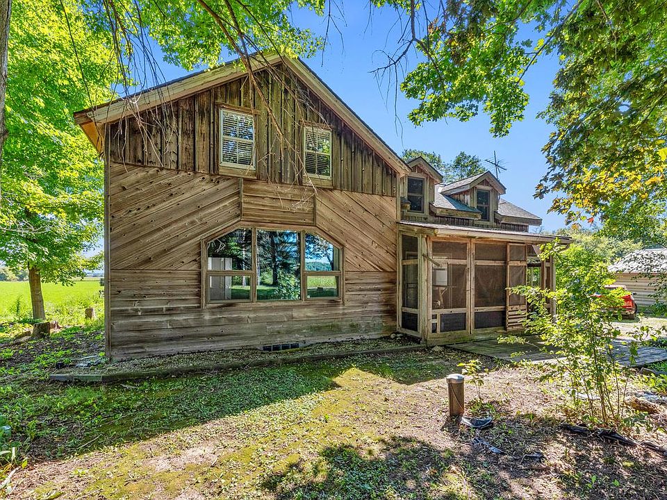 Step back in time at this rural 4 bedroom 1 bath home on 3.6 acres. Rustic charm can be found at every turn with exposed beams, original log wall and wood stove. The kitchen has just been renovated with custom, solid oak cabinetry, LVP floors and a charming pantry. The kitchen is open to a huge dining room with a patio door that opens to a screen porch. The living room has stunning views of the wooded front yard and is the perfect spot to cozy up on a winter day. The main level also has a large laundry/mudroom, office and bedroom. Upstairs there are 3 bedrooms and a den (or game room or nursery!) The property offers peace and quiet and is surrounded by farm fields. The backyard is partially fenced and has a variety of fruit trees. Come see the country charmer!