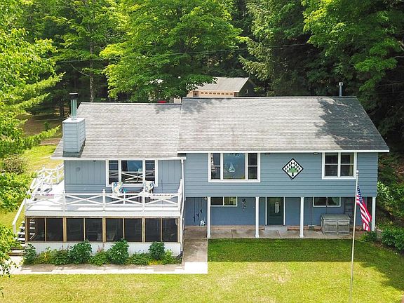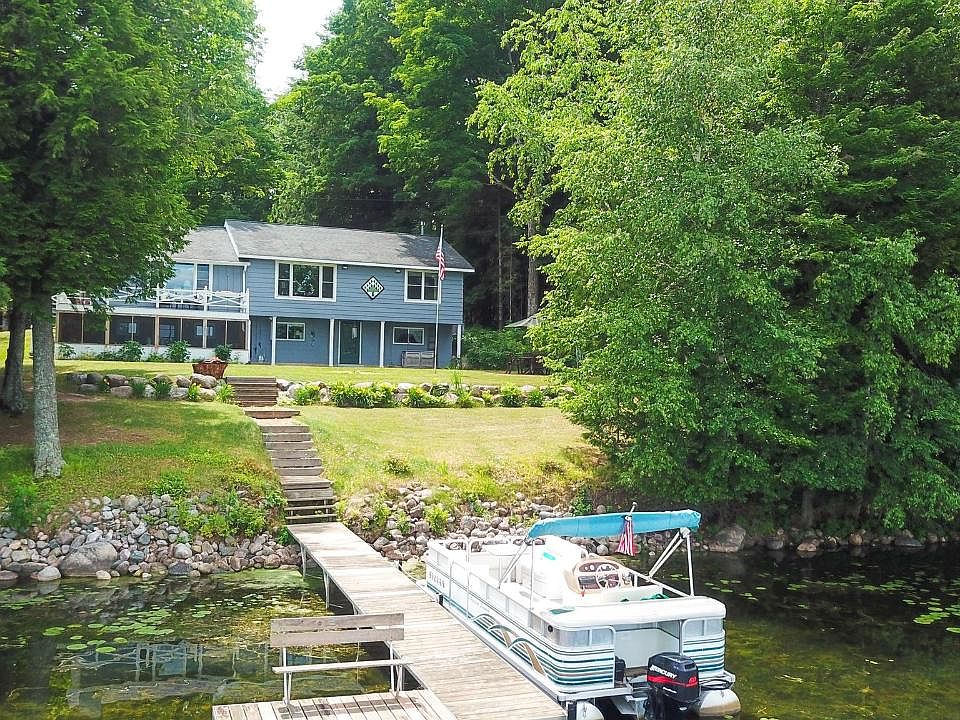 Waterfront home in an excellent recreational area. Enjoy fishing, boating, hunting, golfing, resorts, ATV trails, and all of nature's experiences nearby. Make the move to the Northwoods or appreciate this well-maintained home as a get-away situated at the end of a private road on Rolling Stone Lake in Langlade County. The main level features big water views and a wood burning fireplace in an open concept kitchen/dining/family room and living room. There are 2 bedrooms and a full bath with walk-in shower on this level. The walk out lower level has a generous bedroom, office, full bath, workshop/utility area and a fun eclectic rec room with direct lakeside access through a screened porch. There is a 32x23 ft garage w/ 3 stalls and an insulated workshop. Updates include new hydronic system, new refrigerator, newer windows, and generator. The property is nicely wooded and feels comfortable having a covered front porch, an open wrap around deck, and level lakeside area for lawn games.