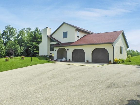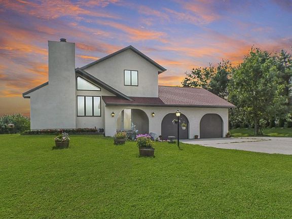 MOTIVATED SELLER! This is an excellent opportunity to own a classy home on desirable Fremont Rd. This home is clearly aggressively priced. Beautiful Southwest style house on sun-splashed 2.2 acre lot. The inside features cathedral ceilings, fireplace in the front room, granite countertops in the kitchen, wood-floored family room with wood stove for cozy winter evenings, bathrooms with jacuzzi tubs, a finished basement with 9-ft. ceilings, bar, exercise room, rec room, and more. The outside features 3 decks, a storage shed, a large yard for recreation, and awesome views to the west and east.