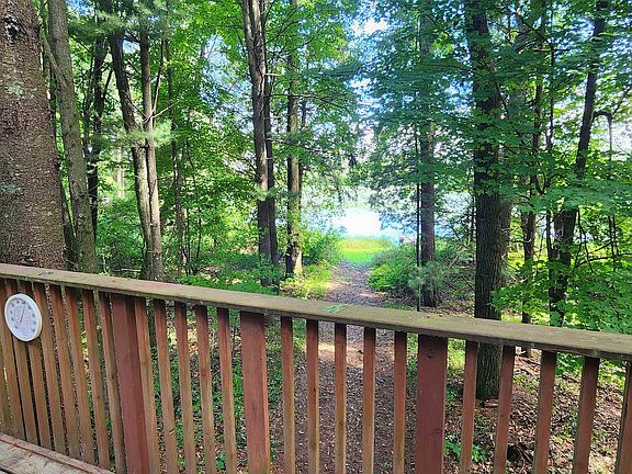 Quiet getaway nestled on Chalet Lake, you’ll enjoy peaceful days & great fishing for largemouth Bass, perch, +more! 1.9 acres w/towering pine trees makes for the perfect setting of your cabin in the woods that these owners lovingly built in 2000. Waupaca area has many Lakes around including the Chain Of Lakes. The lower large 2.5 + car garage could also be turned into more living space if needed. This home comes turnkey, it includes mostly everything you see at it, including the boats in the garage! Nice comfortable floor plan. Close to snowmobile trail & Rustic Woods Campfire Bar, Grill & Campgrounds. 3BR conv septic. Nice deck w/lovely views! Land Contract available at 3.9% interest rate, with 17% down payment, amortized over anywhere between 5-15 years. Water frontage GIS estimate.