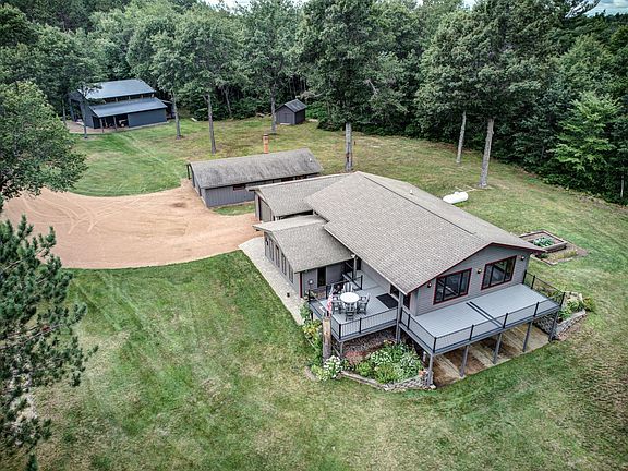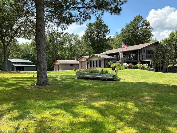 Blissful peace and serenity are found here, yet mere minutes to the conveniences of town. This completely renovated home sits on a huge, wooded parcel w/ expansive waterfrontage on the Jersey Flowage, which does not experience big level fluctuations. Enjoy kayaking, boating, fishing year-round, hunting, snowshoeing, and strolls through nature. It's a gentle walk to the water where you find a swim area by the dock, as well as a dry boat house for all the toys. RV, boats, and other recreational vehicles can be housed in the huge pole shed and multiple garages. Besides the 3 bedrooms, there is a home office with those Canadian-like views. The upgrades are too many to itemize, but ask for the full list. Just a few features include a new entry/parlor room, gorgeous Alder wood cabinetry with tile backsplash, LVP flooring, new appliances, deck, and quality fixtures. New mechanicals since 2017, as well, for a worry-free life. Close to golfing, shopping, and trail systems.