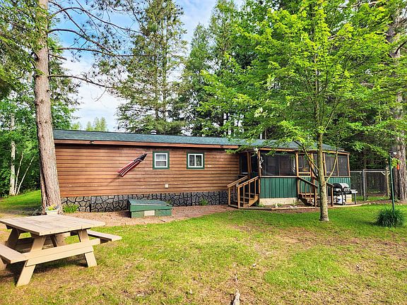 Nestled on 1.34 acres with 100ft of frontage on highly sought after Squaw Creek/Solberg Lake, this 2-BD with an addition, currently used as a 3rd BD, 1-BA mobile home offers idyllic lakeside living. Sold fully furnished and turnkey including all the essentials as well as a 16' Sweetwater pontoon boat, a 2000 SeaDoo Jetski, and a 2000 Polaris Waverunner for aquatic adventures. At the waters edge is a 15x8 boathouse with water, electricity, and an attached screened in fish cleaning station. A detached 2-car garage adds convenience for vehicle and storage needs. Situated at the end of the road on the ATV route with direct access to snowmobile trails and minutes to 1000s of acres of public Price County Forest Land, it's a paradise for outdoor enthusiasts. Recent updates include a new roof in 2023 and a new septic system in 2020. This retreat promises both relaxation and recreation in a pristine natural setting. Pack your clothes and start enjoying the Northwoods!