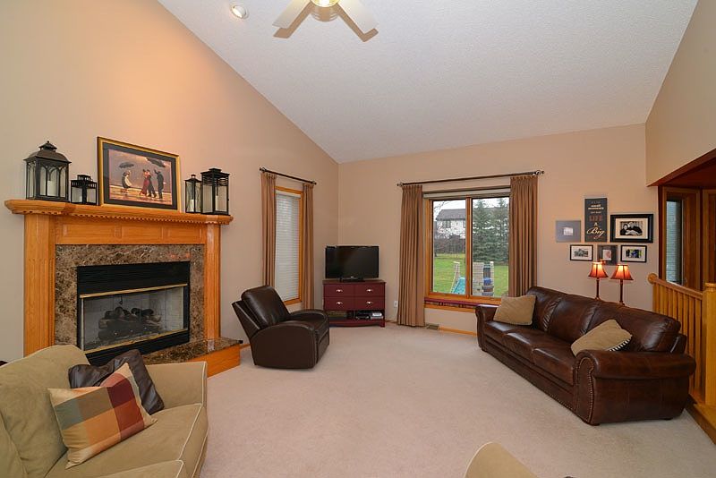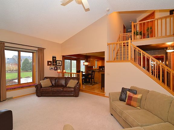 Wonderful home in Esquire Estates only made available due to seller relocation. Soaring ceilings welcome you from the great room with oak surround gas fireplace to warm you on cool nights. The kitchen has been updated with granite and boasts hardwood floors, oak cabinetry with pull out drawers. Enjoy old fashioned family get togethers in the dining room with tray ceiling, built in hutch and hardwood floor surrounding inlayed carpet. Master suite with french doors showcasing a place for rest. Private master bath and walk in closet with organizers. Two more bedrooms both with closet organizers and 2nd full bath upstairs. Relax with a good book in the lofted library. Finished family room in the lower provides additional space for fun and entertainment. Great storage too! Enjoy the many gatherings offered at the island pool/lake! Movie night, Egg hunt, Summer BBQ's to name a few. The pool and lake provide a great fun retreat in the summer! 1 yr hm warranty provided.