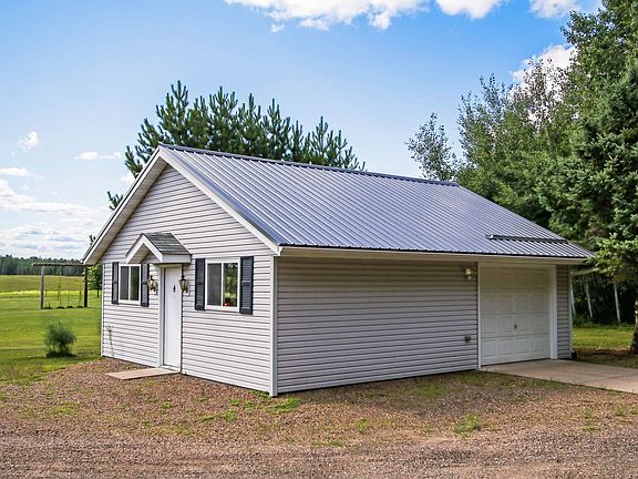 Many reasons to buy this one! Hobby Farm/Hunting/Self Employed - Open concept floor plan. Great room w/floor to ceiling stone fireplace. Kitchen w/island. Built-in double ovens & Jennair 5 burner downdraft cooktop. Main floor master suite & guest room, 1st fl laundry. Upper level is 3rd bedroom/family room. 29x24 heated garage, 13x17 shed, 24x29 workshop/workout area w/water. Property joins over 2000 acres of Price county Forest Land. Cut trails/pond - excellent hunting. Pond has separate well.