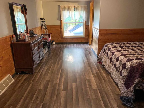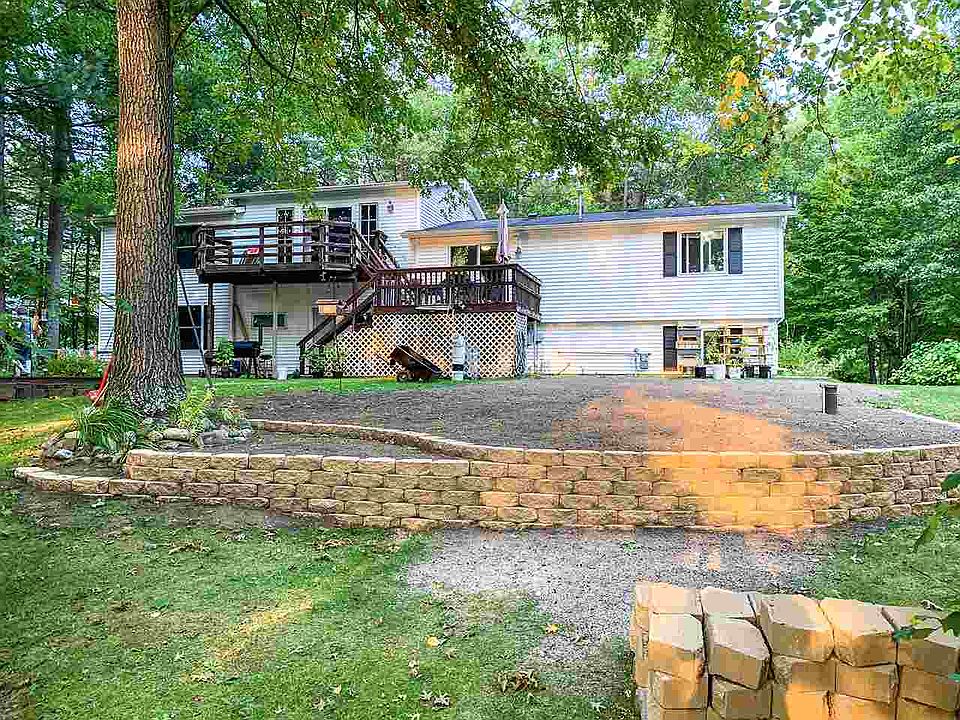 Seller is relocating and needs to move this lake home. Spacious home with split layout. 2 bedrooms and main bath off kitchen dinning area. Large master bedroom, master bath and walk in closet off the large living room. Lower level bedrooms and full bath. Lower level rec-room with bar, pool table area that is off the attached garage. Updated appliances included. Large backyard with deck area off kitchen and living room. Two additional workshops/storage sheds. Great frontage to swim or fish from right off the dock. Boat landing is very close along with the golf course, snowmobile trails, ATV/UTV right from the driveway. Only minutes from town but very quiet area. Schedule a showing today!