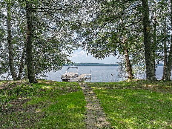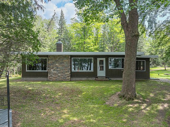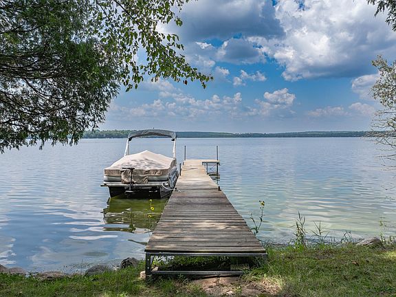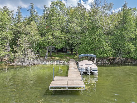 This charming 3-bedroom, 1-bath cabin is located on the sandy shore of Rolling Stone Lake. It offers plenty of storage space for your waterfront equipment or Northwoods hobbies. The home features a fully equipped kitchen, an open-concept living room and dining area with a wood-burning fireplace and picture windows that provide stunning lake views, a full bathroom, and three spacious bedrooms. The unfinished basement includes laundry hookups. The property includes a 2-car detached garage, a 42x36 pole building with a 12x12 enclosed area (workshop or workout room), storage shelves, 10 ft. doors, and a dog kennel. Additionally, you can enjoy a peaceful moment by the creek that borders one side of the property. The location is close to snowmobile and ATV trails, adjacent to thousands of acres of public land for hiking and hunting, and just 15 minutes from the Wolf River, known for its Trout Fishing.