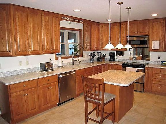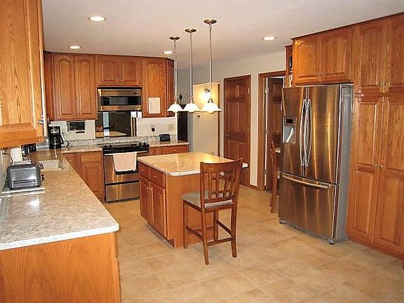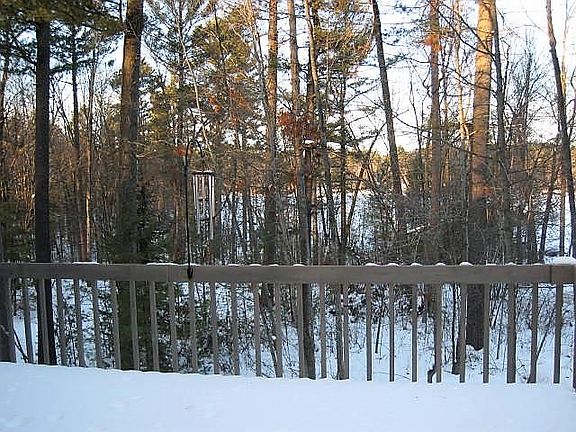 This quality constructed home with unique architectural details is sure to please the next owner. The home is very well suited for entertaining...spacious kitchen w/ granite countertops, island, and lots of cabinet space. Adjacent dining area features a gas fireplace, and there are patio doors out to the huge 3 season room which feels like you are perched in a tree house. A large great room includes exit to the expansive lakeside sundeck. A secondary dining room/sitting room includes bay window. Upstairs you'll find a huge master suite w/ cathedral ceiling, gas fireplace, and luxury master bath (dual vanity and walk-in shower). Second bdrm is large enough to include your home office, and third bdrm enjoys wooded lakeside views. Unfinished walk-out LL will allow for additional living space. 3 car att garage, plus 2 car det garage with loft storage. Stroll down the path through the scenic wooded lot to the permanent dock and do a little fishing.