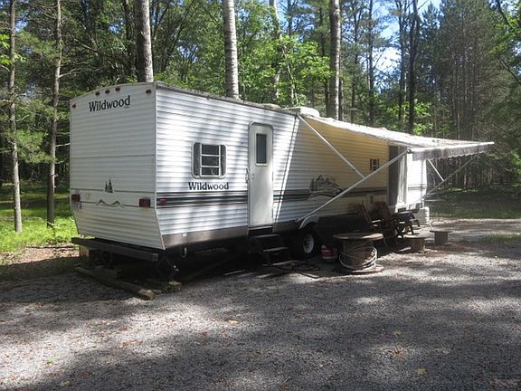 This is all ready to use, just bring your toys and stuff! New 400 ft. gravel driveway and 50 X 50 gravel pad that houses the 39' Wildwood Camper that is included! 3.74 Wooded Acres with 156 ft. of Menominee River frontage. Swim, Kayak, Tube, small boat, enjoy hours of relaxation and catch a few rays and a fish or 2, maybe even a Sturgeon? Buried electric to the Camper and a sand point well. Camper has a Grey Water Tank for waste that is pumped when needed ($100). 10 X 12 steel shed houses the toys. Mature trees. No covenants or restrictions of record! Two nearby boat landing for easy river access. Short drive to Wausaukee. Lot has been perk tested for a 2 Br Conventional Septic!