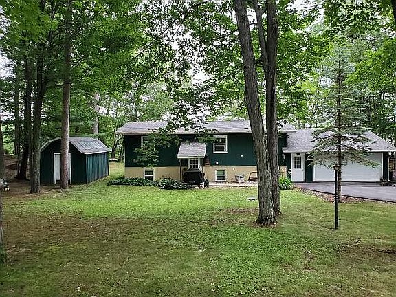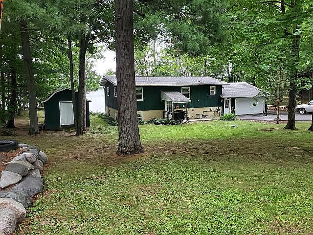 This split-level home on Crystal Lake has 1920 sq feet and a 2-car garage. The home has nicely sized public spaces with a living room and family room with a walkout to the patio that has amazing views of the lake. It's on a wooded lot with Maples, Oaks, Aspen and large Red Pines.