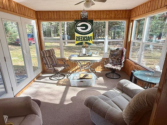 Northwoods cottage-vintage feel with purposeful updates. Two lots at .44 acres! This 2-bedroom 1bath home has the added bonus of a full (low ceiling) basement for extra storage, a 1.5-car garage, and an inviting 11x11 three-season porch (not included in sq/ftg) with newer windows overlooking the tree-lined yard. The updated primary bedroom showcases warm knotty pine finishes and pass-through access to the full bath. Original hardwood floors and quirky duck wallpaper in the kitchen showcase the nostalgic vibe. New furnace (2017), new septic drain field (2025), and new vinyl siding on the garage front. Outhouse in back (condition unknown). Enjoy as is or bring you vision to this vacation ready property.