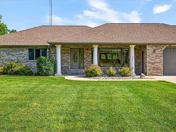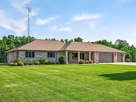 Rare Rural Retreat Just Minutes from Town! Set on a scenic 5-acres, this exceptional all-brick ranch blends country charm with modern convenience. The spacious open-concept design features a bright kitchen with included appliances, first-floor laundry, and recent upgrades including new furnace and A/C for year-round comfort. Outside, the opportunities are endless. The heated 3.5 car garage is a showstopper—featuring coated floors, hot & cold water, and direct lower-level access. A second well supports the irrigation system and is ready for future outdoor use. Plus, additional electrical hookups are in place for your camper or future outbuilding. Whether you're looking for privacy, space to grow, or a place to bring your hobbies to life—this one of kind home checks every box.