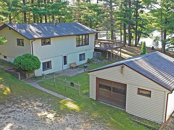 Peace and quiet is what you will find at this picturesque property. You can move right into this raised ranch home on Gooseneck Lake. Main level has an open concept layout with updated kitchen & spacious mud room. Full, walk out lower level with additional bedroom, family room & full bathroom that is partially finished. Great deck to watch all the wild life & gaze at your water frontage. Detached garage has workshop in back that could be a great bunk house for additional room for guests!