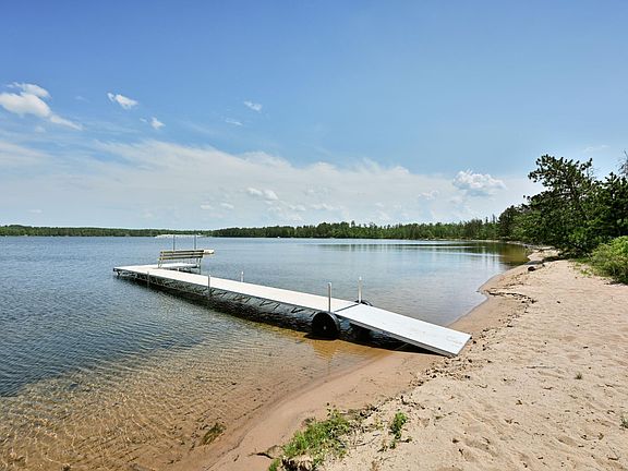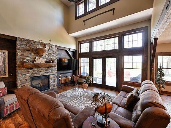 Secluded lakefront home on 49 acres of wooded & wetland habitat w/extensive trails…hunt, ATV, hike or ski. Abundant wildlife: whitetail, turkey, & more. Custom built w/repurposed beams & wdwk from historic barn, oak flrs w/skip-saw detail, slate flrs & open concept w/panoramic lake view. Wall of windows bring the outdoors in, gather at cozy FPLC or walkout to stamped concrete patio, firepit, perennial garden, level path to 499’ sandy lakeshore w/new dock. Kitchen w/granite & alder cabinets & center island, SS applcs. Main lvl primary suite an oasis w/spa like bath amenities. 2 Lg suites upstairs each w/private ¾ bath. Loft features bunk nook & room to gather. Addl amenities: in-floor heat, ceramic & slate baths, full lndy, grilling station, 2+ car gar & 16x14 shed, cleared space for future accessory bldg...too many to list. Approx. 2 hrs to MSP metro-perfect turnkey year-round or vacation home. Nearby 1000’s acres public land, UTV/ATV snow trails. Enjoy all the Northwoods has to offer