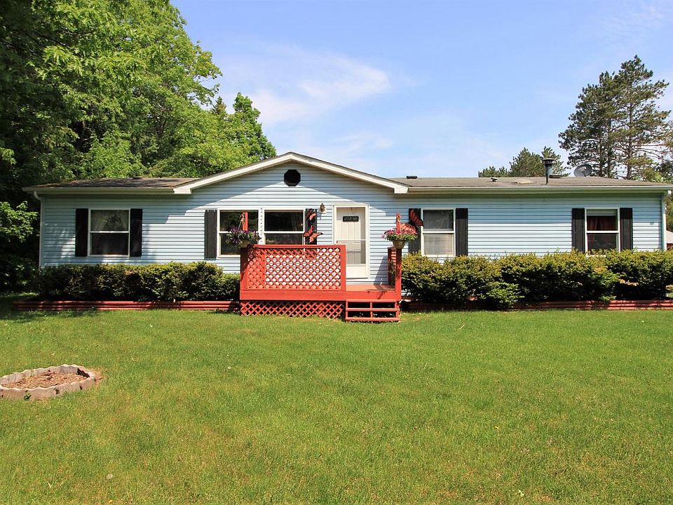 This 3 bedroom, 2 bath home lies down a windy, quiet road in Northern Wisconsin on an acre lot. Enjoy 2 family rooms on opposite sides of the home with a large kitchen and dinning room area in between. Master bedroom, separated from the others, boasts lots of space and a large master bath with both a walk-in shower and a jet tub. Walk out onto your screened in porch or front deck to admire the wildlife eating in your lawn, hopping across your driveway, and flying around your feeders. Two car garage offers additional outdoor parking with an attached covered parking space, as well as additional storage inside the garage and in the matching garden shed near by. Large shade trees provide a place to relax on a hot day and helps cool you down while you're working in the garden!