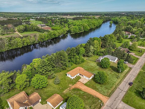 Spacious 5-bedroom, 3.5-bath ranch nestled along a prime stretch of the Wisconsin River, renowned for its excellent fishing. With 1800 sq ft on the main level. The main level features a living-dining area that could have views of the river, perfect for entertaining or relaxing. Adjacent to the large kitchen is a cozy family room with a charming fireplace for those chilly Wisconsin evenings. The kitchen itself is generously sized with a built-in table, providing ample space. Master bedroom with an attached full bath. Additionally, the main level includes two more bedrooms, a full bath, and a convenient half bath. An attached 2-car garage. The lower level has a dedicated office space, two additional bedrooms, and a full bath, making it ideal for guests or a growing family. A large rec-room opens up to the backyard through a patio door, perfect for indoor-outdoor living and entertaining.