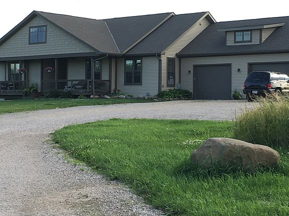 Beautiful hilltop 35 acre, 2,300 sq/ft. open ranch in the rolling hills in the Town of Portland. Built in 2012 this home features granite counter tops, stainless appliances, 6' windows, hard wood floors and more. The unfinished walk out lower level has 9' ceilings, a full bath, zoned hydronic heat in floor and is plumbed in for a wet bar. An attached 3 car garage plus a 56'x48' stick built outbuilding provides space for multiple uses. Some finishing work needs to be completed in master and basement bathrooms.