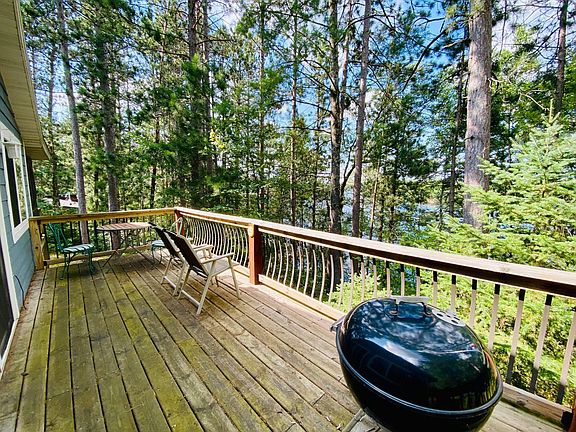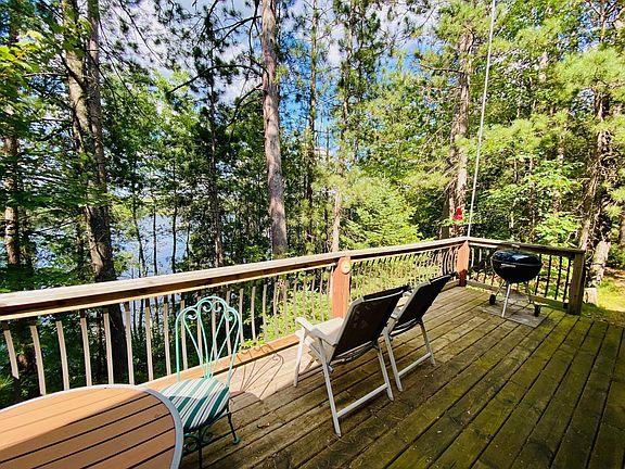 Escape to this charming cabin on the Minong Flowage, fully remodeled in 2017 with low maintenance in mind. Enjoy the open floor plan, perfect for entertaining, and relax on the spacious wood deck or screened porch, both offering stunning lake views. Being offered turnkey inside and out with furnishings, dock, pontoon and pontoon trailer to step in and enjoy yourself on day one. This popular recreational lake is a boater's paradise with nearby bars, restaurants, and scenic islands. The area boasts numerous trails for four-wheeling and snowmobiling, making it an outdoor enthusiast's dream. Your serene lakefront retreat awaits!
