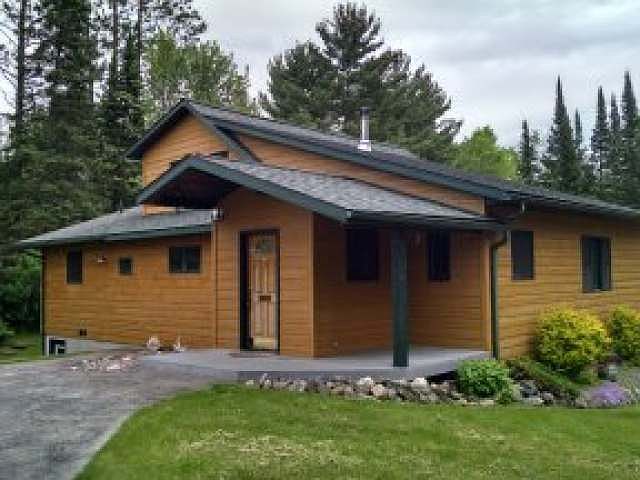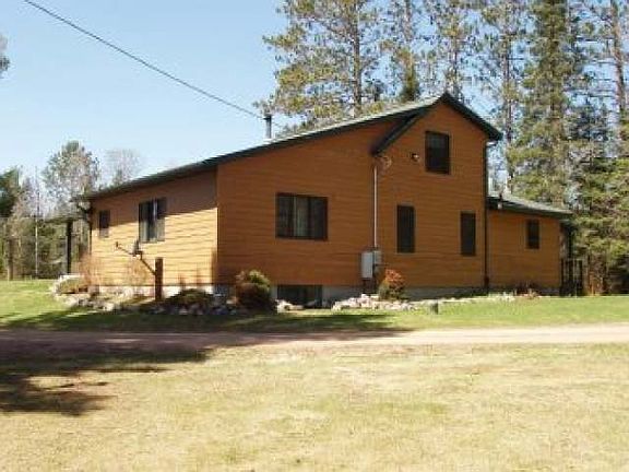 (245)The Ultimate Gift: Privacy! Beautiful landscaped yard, inviting outdoor living space featuring stamped concrete, including sitting area with fire pit and hammocks. 3-bedroom, 2 bath remodeled home begins with an inviting living room with cathedral ceiling and free standing wood stove, spacious dining room, beautiful kitchen with Hickory cabinets and high end appliances, breakfast bar and patio door leading to the screened porch. Master bedroom boasts a walk-in closet and master bath. Upstairs bedrooms are spacious and one is very unique with a playroom nook. Main level bath has custom Black Ash cabinets and ceramic tile floor. Walkout basement has storage plus utility, workout and more. Frontage on the SF Flambeau River, apple orchard, 19+/- acres, 30x48 det. garage, 16x30 carport. $229,900. (7-39-1E)