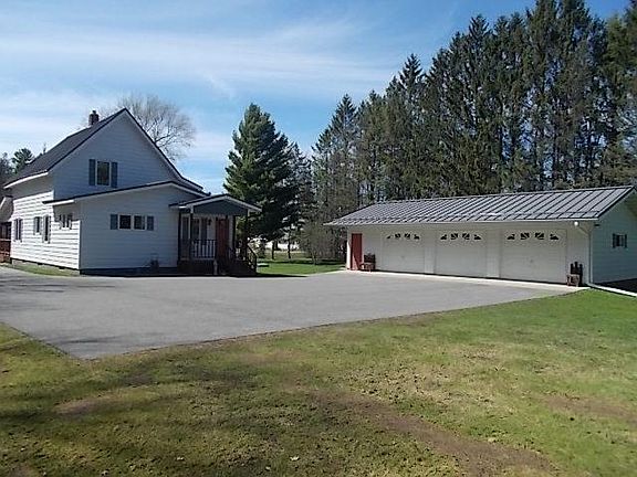 Nicely remodeled and maintained home with 5 acres on the South edge of Merrill! Exterior has steel siding and metal roof on house and garage. (Metal roofs appx. 2 years old) Plenty of storage throughout with spacious rooms. Enjoy relaxing on the exposed front porch with your morning coffee while watching the wildlife. Imagine holidays in front of the gas fireplace with family and friends. Lower-Level basement is white washed, has a workshop area plus family room. Natural gas furnace and 200 amp electrical. Detached 22'x42' garage with/workshop area. The 5 acres is partially wooded with trails plus storage shed and small barn. This is a gem and needs a new owner like you!